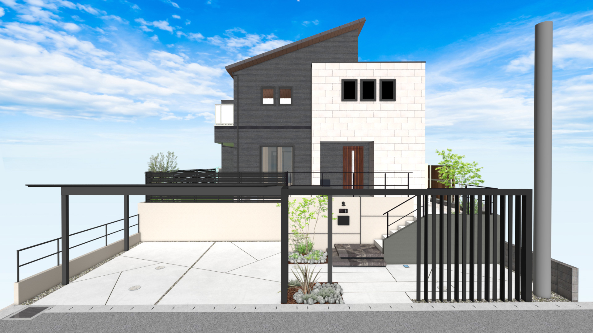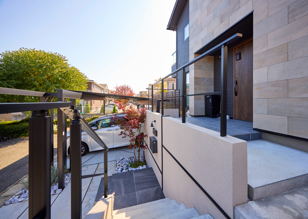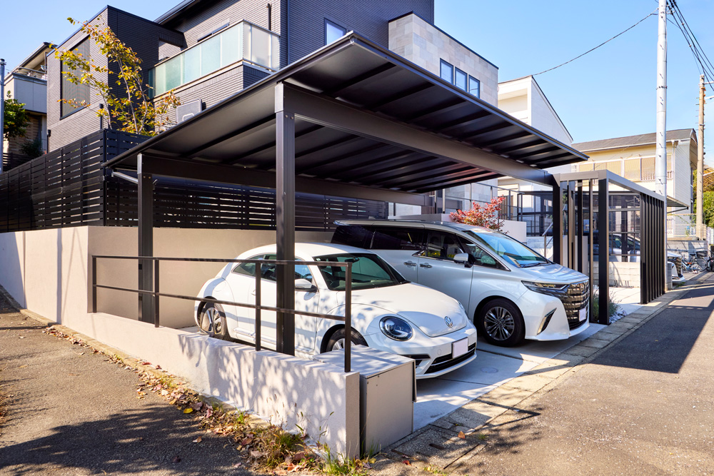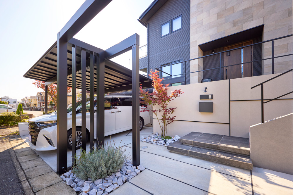 カーポートとフレームで描く洗練されたエクステリア