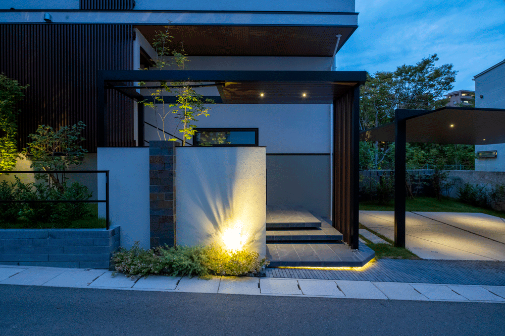 ご主人さま:週末の夜、遅くに帰宅することが多いのですが、ライトアップされた外構を見ると癒されます。