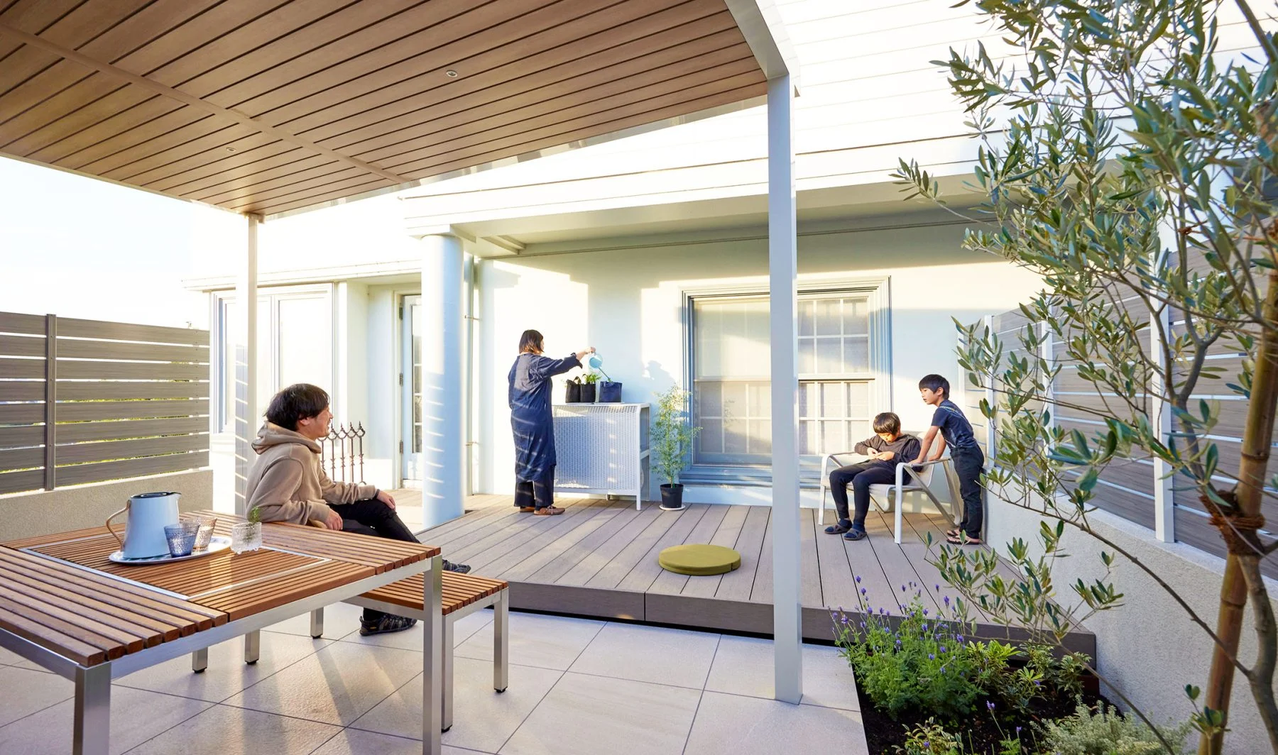 寒くなったら家の中にすぐ入れることから、冬の庭時間は人気。だからこそ庭側の目隠しも大事になります。