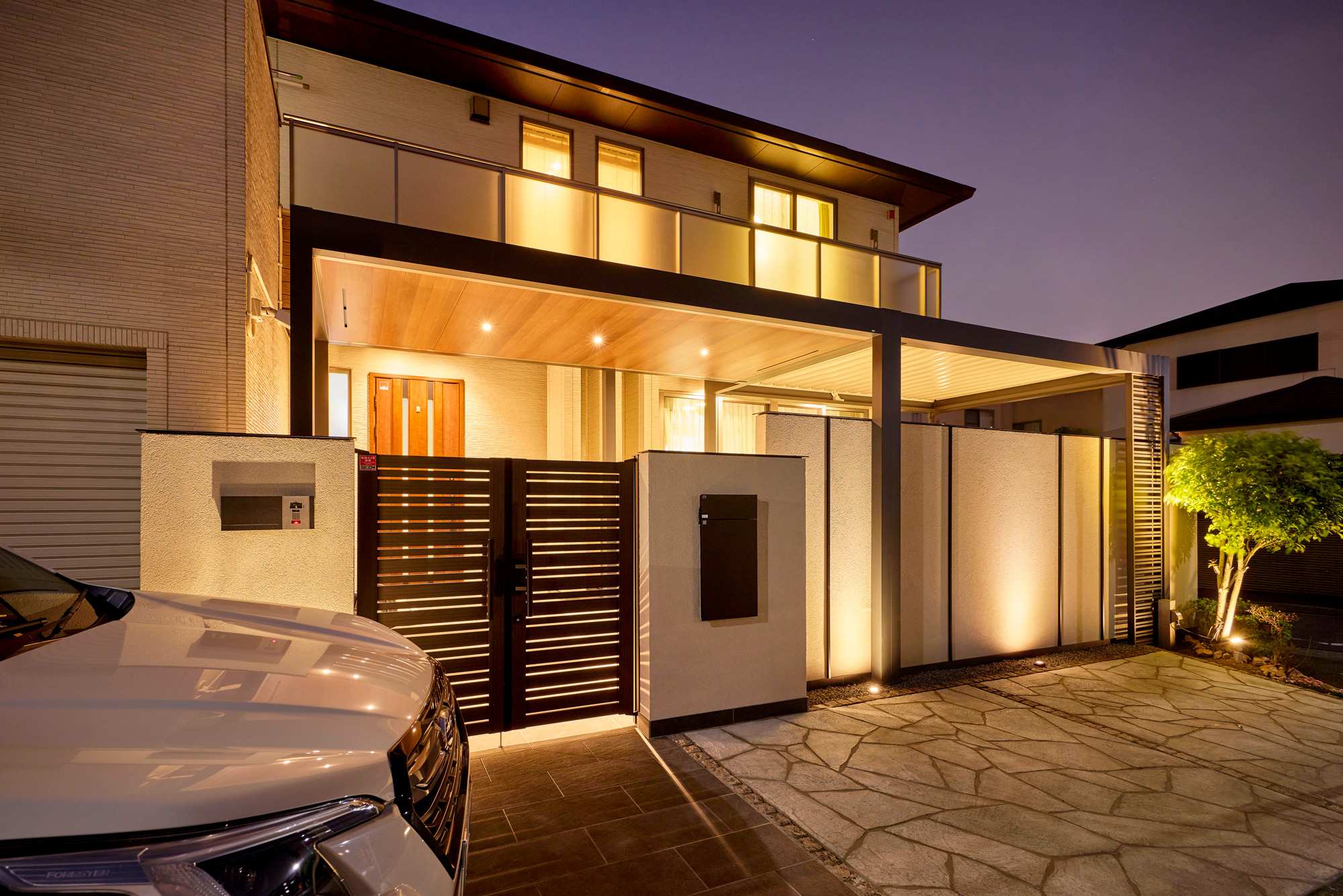 家族と過ごす時間、植栽を眺める時間、どんな夜のシーンも照明ひとつで心地よく変わります。