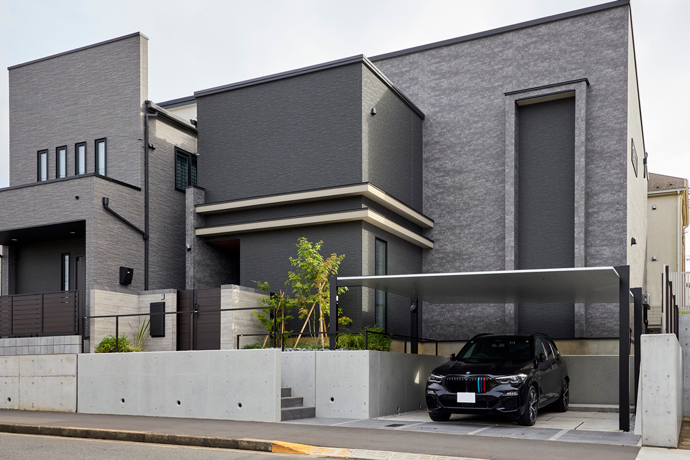 当初ご希望のクローズ外構から、生活スタイルや駐車のしやすさを考慮した美しいフォルムが際立つセミクローズ外構をデザインしました。